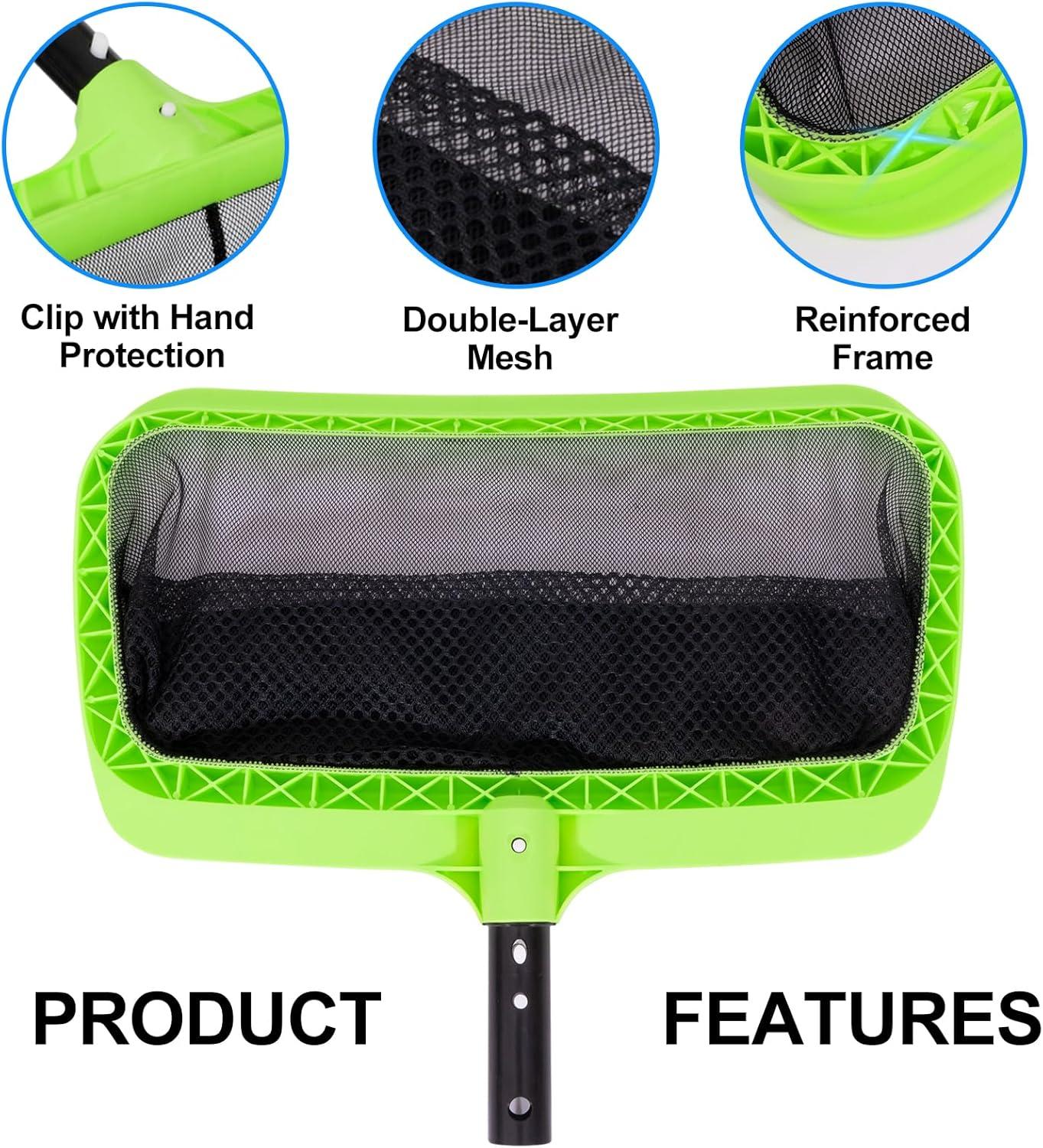 Sepetrel Swimming Pool Leaf Skimmer Net,Double-Layer Reinforced Frame Deep Rake Nets